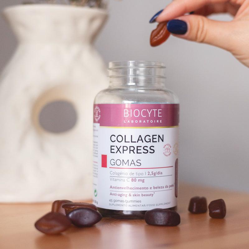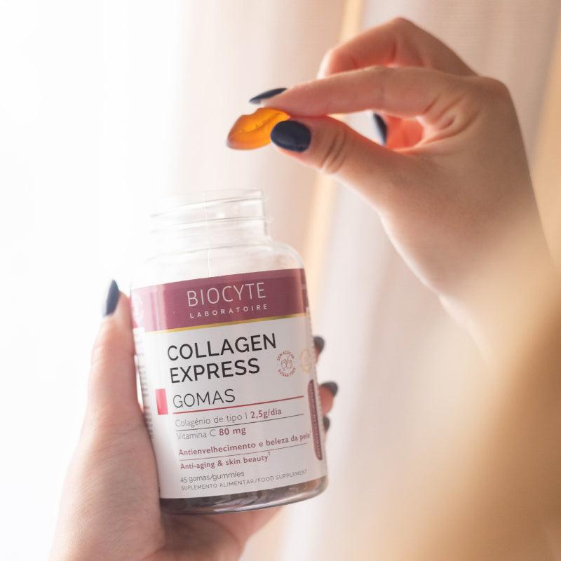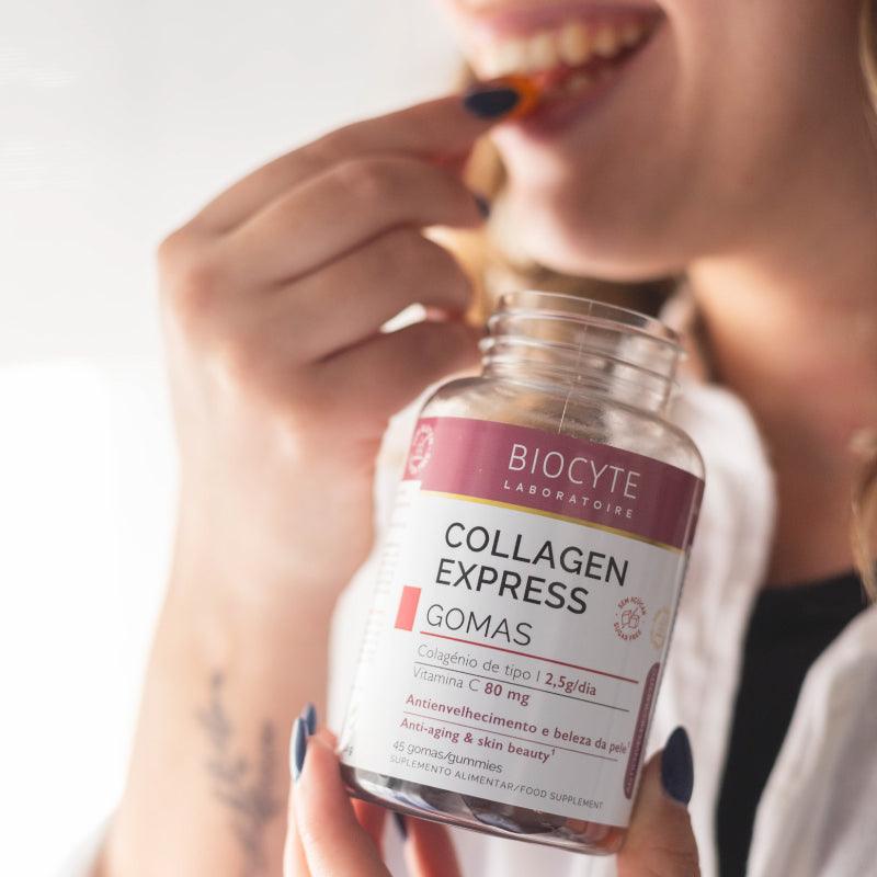 BIOCYTE COLLAGEN EXPRESS GOMAS é um suplemento em forma de gomas que proporciona uma ação antienvelhecimento graças ao colagénio e à vitamina C.