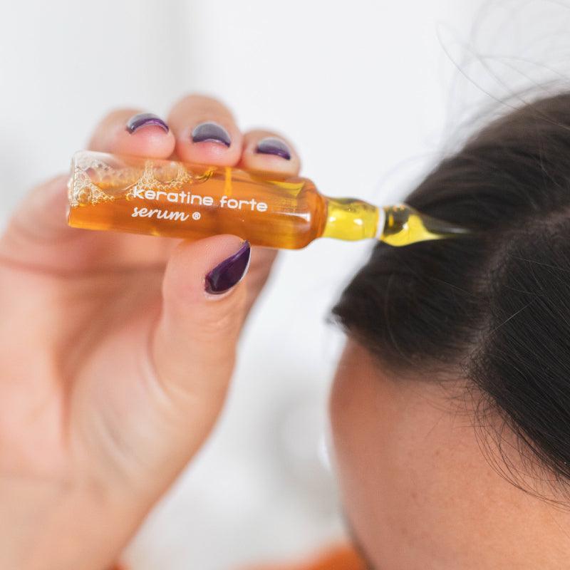 3 - Retire a tampa, pressione firmemente a extremidade da ponta flexível, aplique 1 dose de sérum no couro cabeludo, prestando especial atenção às zonas mais esparsas.