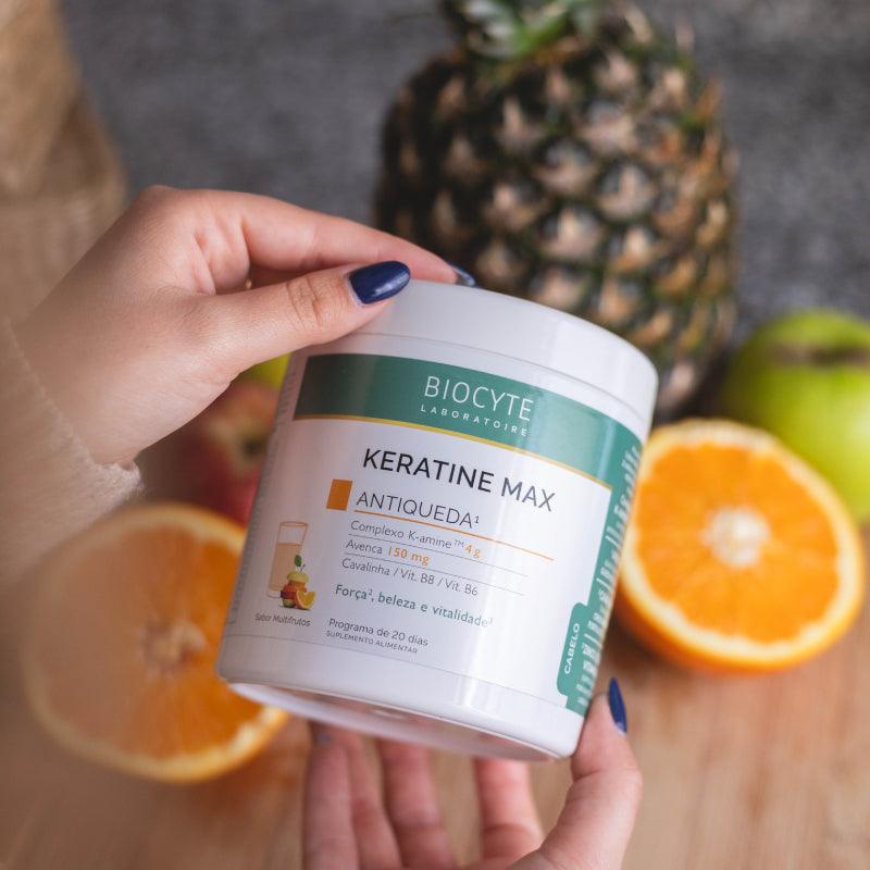 BIOCYTE KERATINE MAX ANTI-QUEDA é um delicioso suplemento com alta concentração de complexo K-AMINETM que fornece os 18 aminoácidos da queratina, bem como um extrato vegetal que ajuda a combater a queda progressiva do cabelo. O cabelo é reestruturado por dentro. Eles recuperam vitalidade, força e volume.