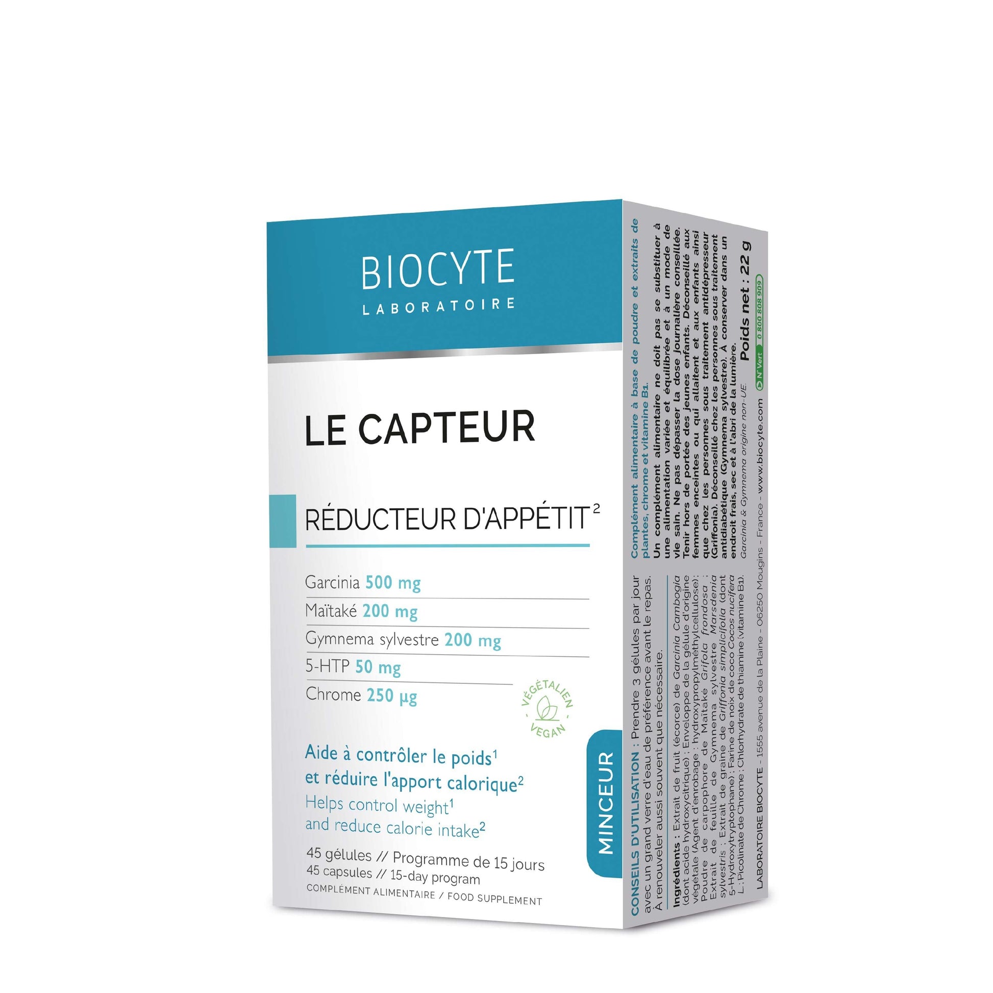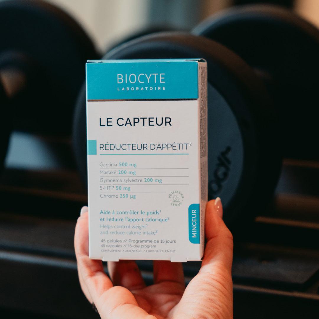 BIOCYTE LE CAPTEUR CONTROLO DO APETITE é um suplemento alimentar que ajuda a controlar o peso e a reduzir a ingestão de calorias graças à Garcinia cambogia e à Gymnema Sylvestre.
