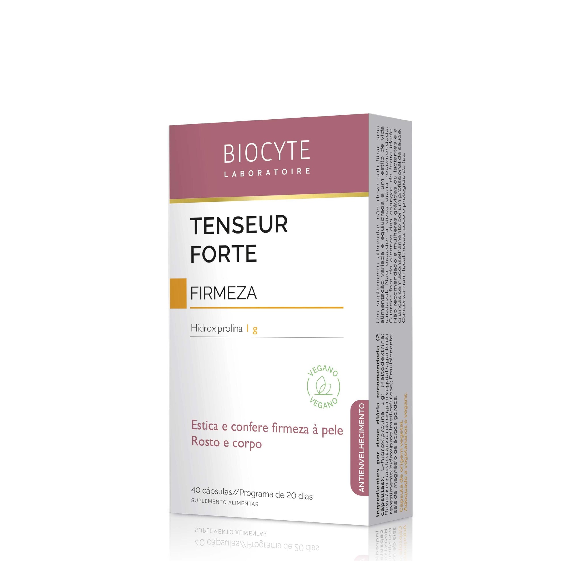 BIOCYTE TENSEUR FORTE é um suplemento alimentar especificamente formulado para combater a flacidez da pele e a perda de firmeza. Graças à hidroxiprolina, a pele é firmada, o oval do rosto é reesculpido e a pele é reafirmada.